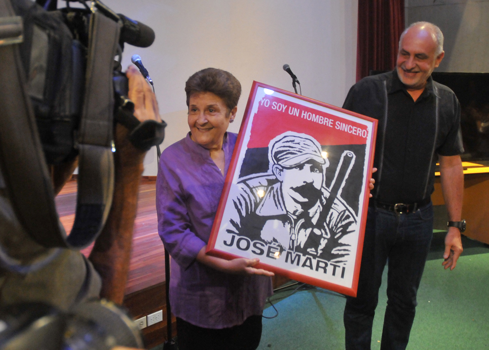 Ricardo Ronquillo Bello, presidente de la Unión de Periodistas de Cuba, entregó a la Agencia la serigrafía El Héroe; igualmente, a nombre del Comité Central Gaute López confirió un reconocimiento.