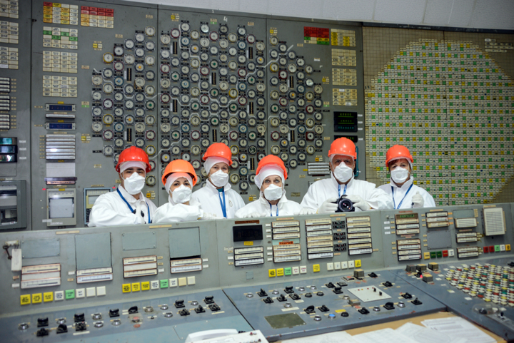 La ruta de un lado y otro del bosque enmarañado, con sus suspiros raros y los nuestros nos llevó hasta la misma Central. Allí estaban todos los reactores, el sarcófago que cubre desde 2016 el IV reactor, un monumento descomunal de hormigón y metal de 110 metros de alto, 150 de ancho y 256 de largo. Un edificio en pie acoge aun las salas de control de los cuatro reactores de Chernobyl. Después de cambiarnos de ropa, incluidas mascarillas, comenzó esa parte del recorrido.