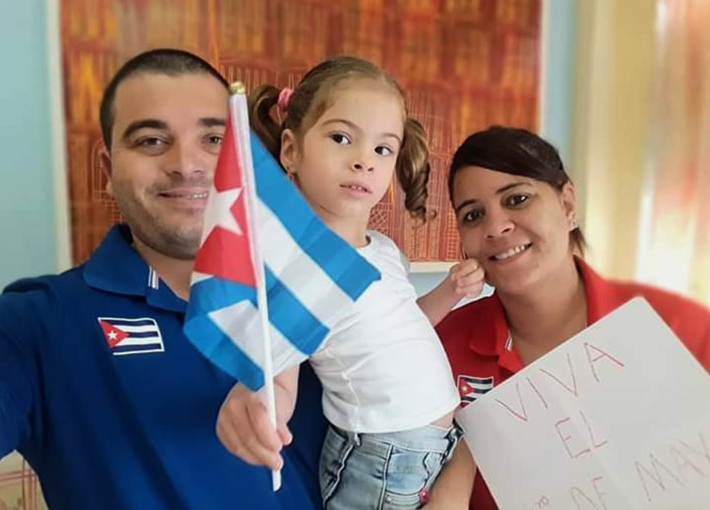 Claudia Díaz Pérez y Guillermo Rodríguez Hidalgo, de Radio Rebelde, junto a su pequeña.