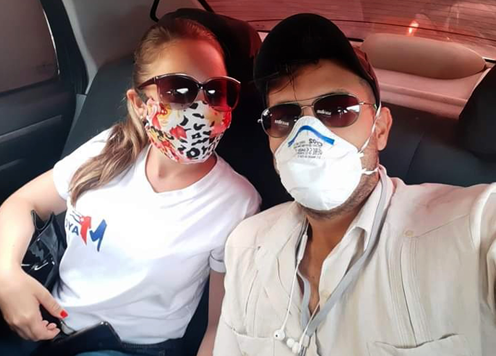 Los periodistas santiagueros Claudia González Catalán y Nazín Salomón, rumbo a una cobertura este Primero de Mayo.