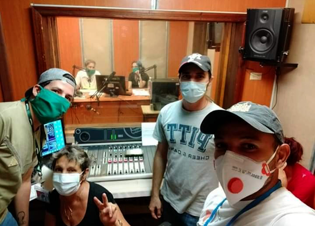 Equipo de prensa desde la cabina de Radio Ariguanabo, en San Antonio de los Baños, Artemisa.