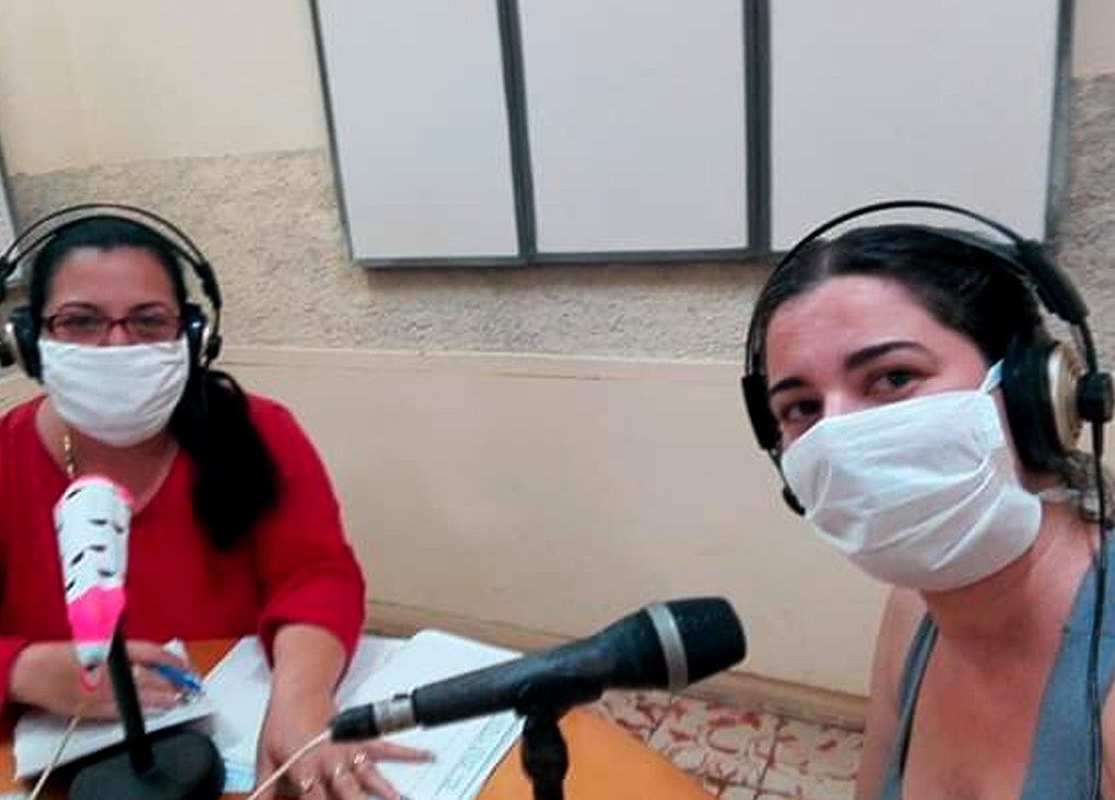 A la derecha, la periodista holguinera Arletis Saragoza Expósito, desde la emisora SG La Voz del Azúcar.