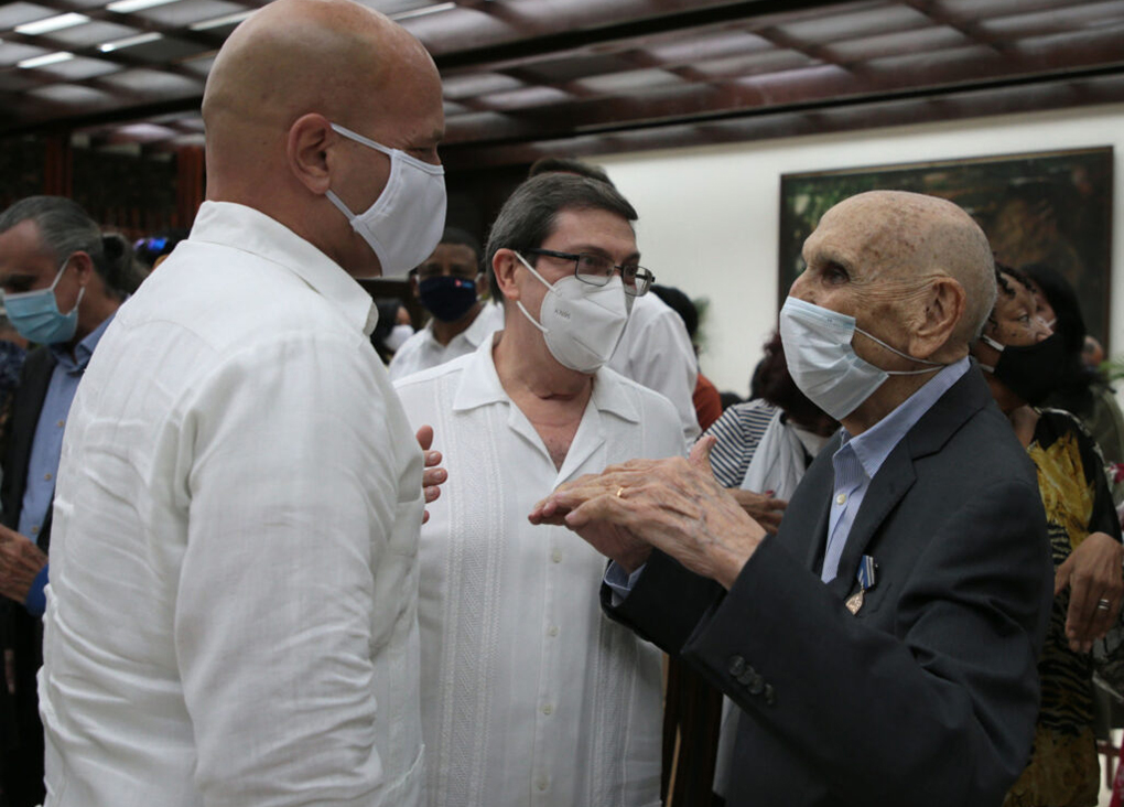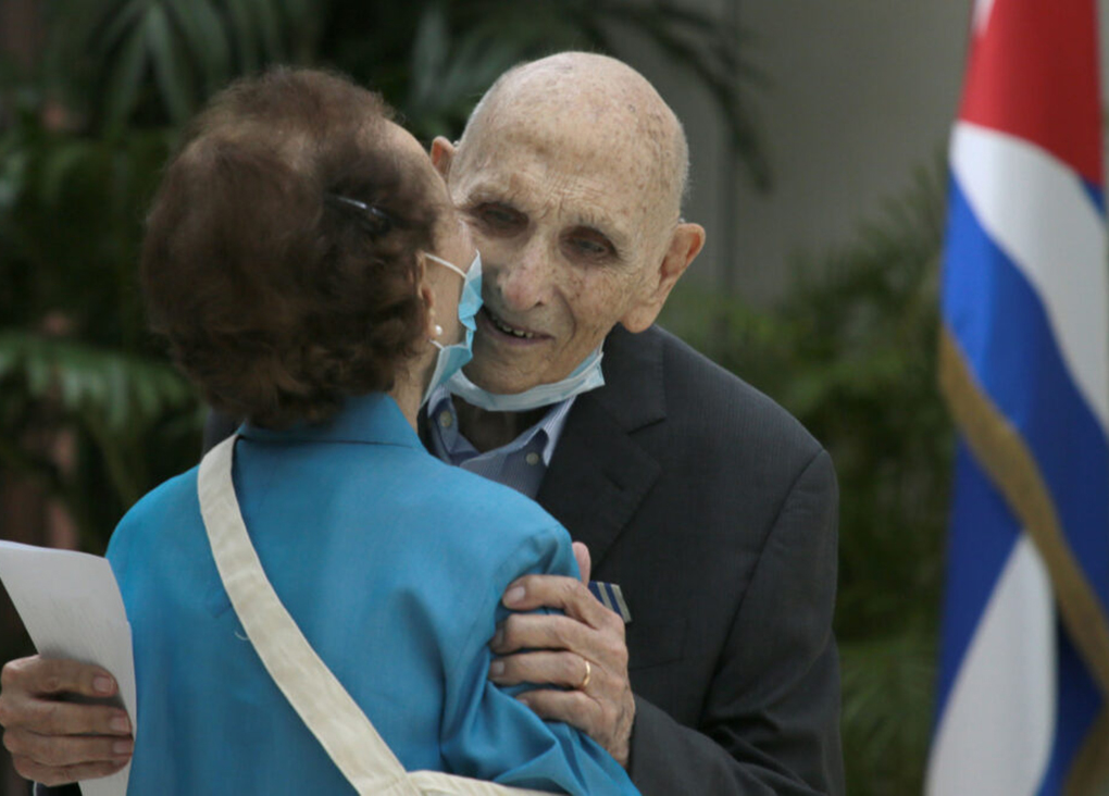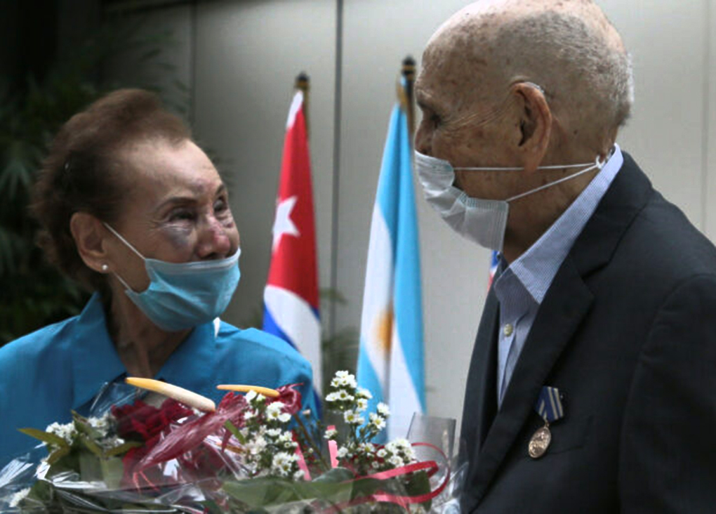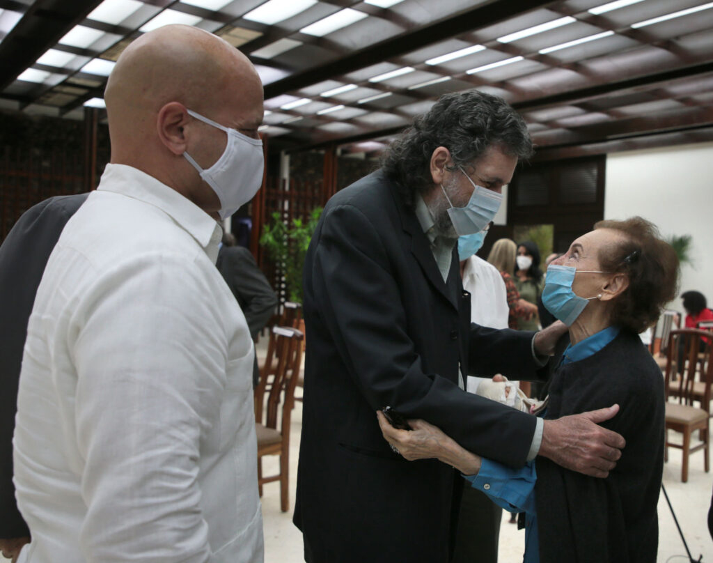 El ministro de Cultura Alpidio Alonso entregó la máxima distinción que otorga la Cultura cubana al matrimonio de cineastas Estela Bravo y Ernesto Bravo, por la extraordinaria obra documental y fílmica que une el patrimonio cultural de tres países: Estados Unidos, Argentina y Cuba, nación en el que radican desde 1959 Estela y Ernesto Bravo.