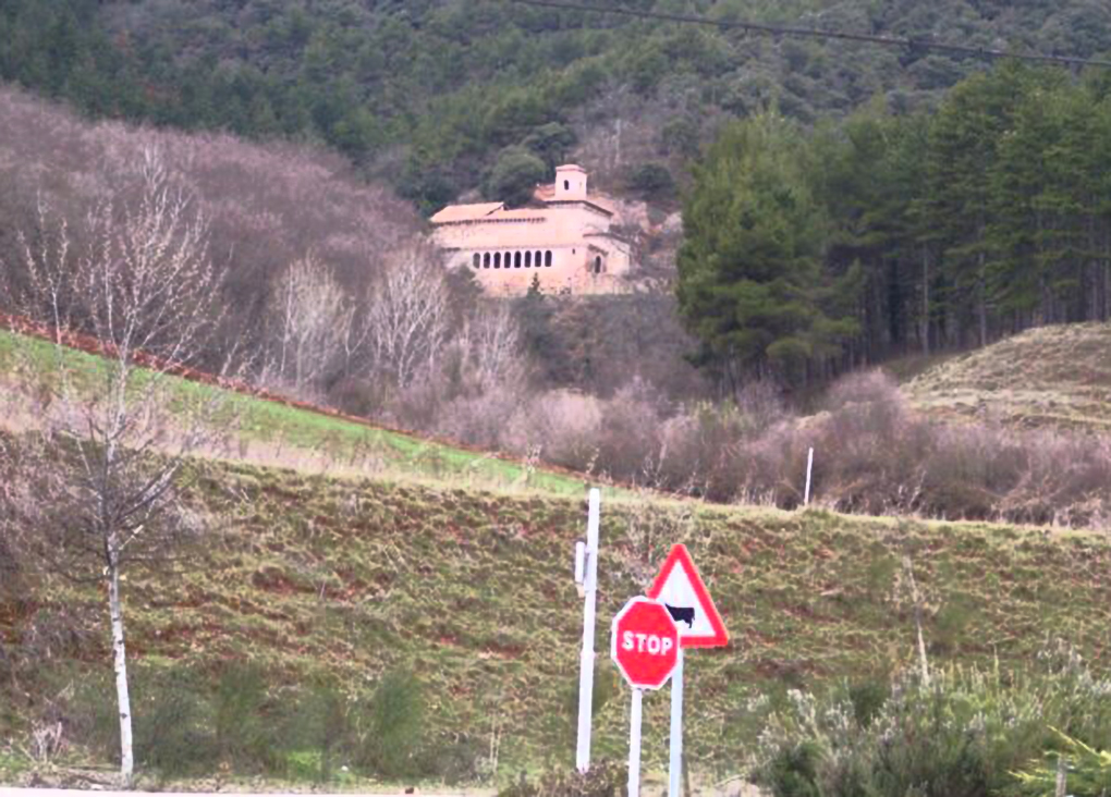 La edificación —construida en piedra con aparejos de sillería, sillarejo y mampostería— consta de un pórtico y un interior de estilos prerrománicos y mozárabes, y está emplazada bajo las cumbres nevadas del Monte San Lorenzo (2.262 metros de altura), en la comunidad autónoma de La Rioja, España.