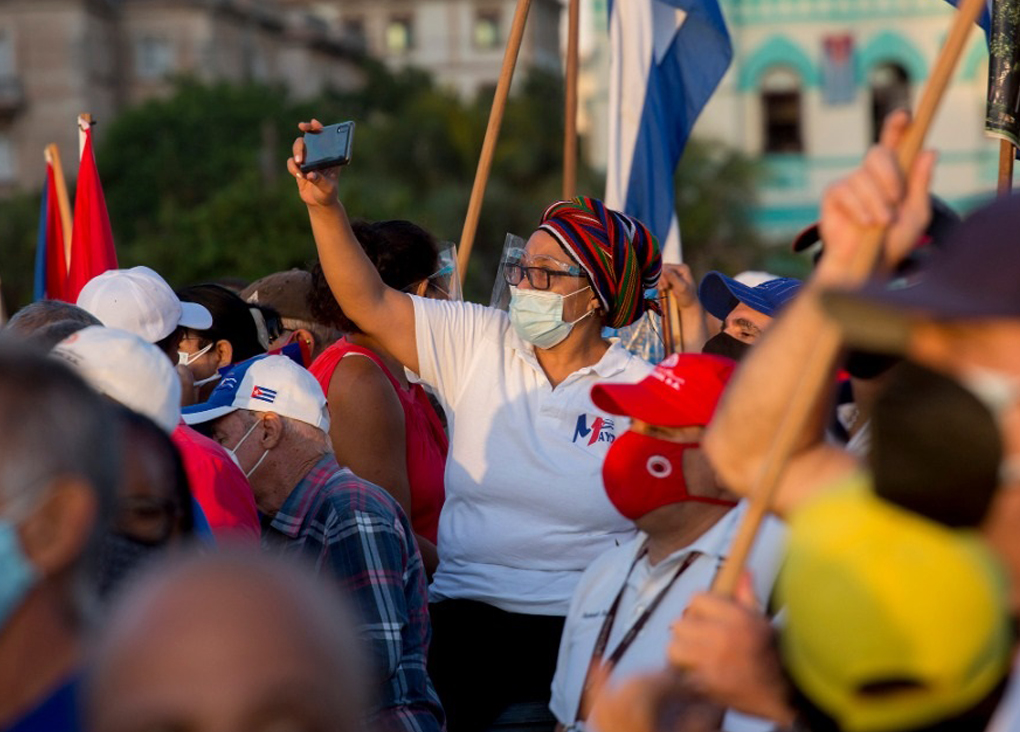 En La Habana, esta mañana, más de 100 mil personas se manifestaron en apoyo a la Revolución cubana. pic.twitter.com/2Tzpycb92c