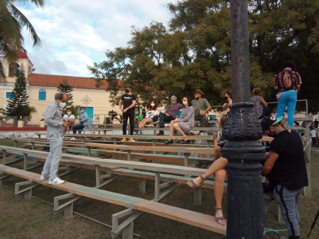 Los artistas que están trabajando allí han mirado hacia un grupo de instituciones y centros de trabajo que surgieron con la Revolución y hoy ya no funcionan pero que han quedado como patrimonios tecnológicos, que se están utilizando en este proyecto. Y Felipe Dulzaides, que es un poeta de la imagen, ha ido más allá: Este proyecto además tiene la manera de cautivar y apropiarse del paisaje; el viaje en la lancha con la imagen de la bahía, la ceiba ancestral y los cantos en torno a las tradiciones afrocubanas. Ellos han ido trabajando alrededor de un proyecto de desarrollo local para la transformación de la comunidad, con la cooperación y el objetivo de la evolución de la vida, como parte de esa vida presente y futura de la comunidad.