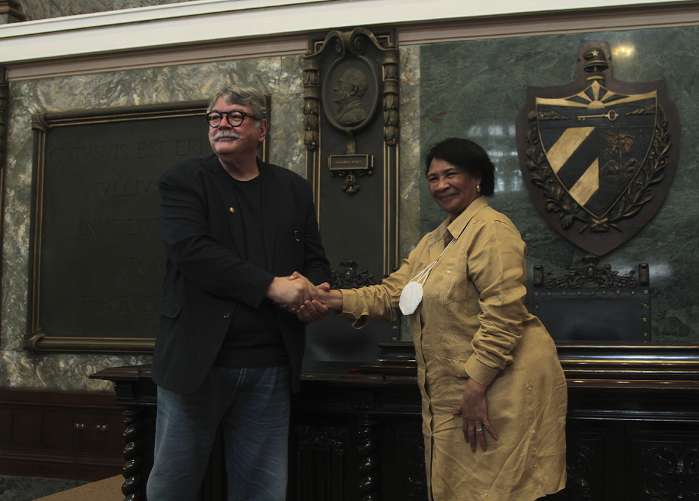 En otra jornada de intensos intercambios en Cuba, el Doctor Fernando Buen Abad pronunció en la mañana de este martes 5 de abril una conferencia magistral en el Aula Magna de la Universidad de La Habana, donde alertó cómo la situación de guerra mediática que vive el mundo exige profundizar, ensanchar, enriquecer categorías; entre ellas, “algunas que se nos vienen quedando un poco esclerótica ante el análisis de lo que ocurre diariamente con una vorágine espeluznante.