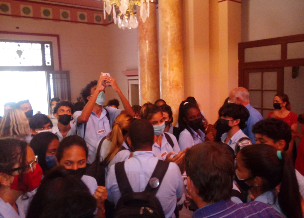 La tarde de este jueves 28 de abril, en la Unión de Periodistas de Cuba (UPEC), fue una inyección de adrenalina. Un grupo de los alumnos de duodécimo grado que ingresó al Colegio de la Universidad de La Habana (UH) para estudiar periodismo, visitó la sede central de la organización y desde el teatro, a partir de las cuatro de la tarde, la rutina del lugar se corrompió con las inquietudes y testimonios de los estudiantes.