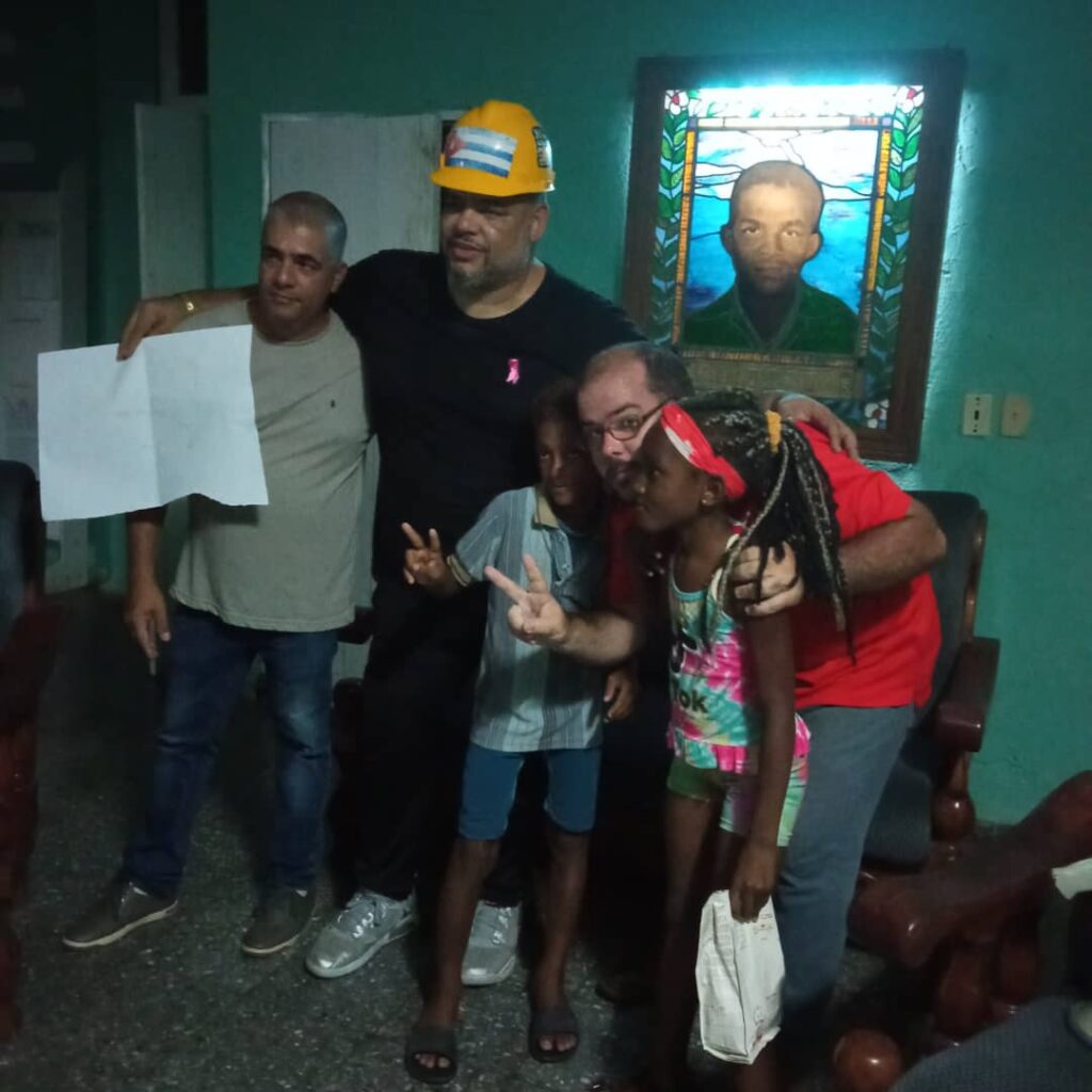 Al llegar a La Habana, Randy nos manda la última foto de esta noche. Regresó a la Escuela de Arte de su municipio a ver a los niños, allí todavía estaba el artista de la plástica Alexis Leiva Machado, Kcho.