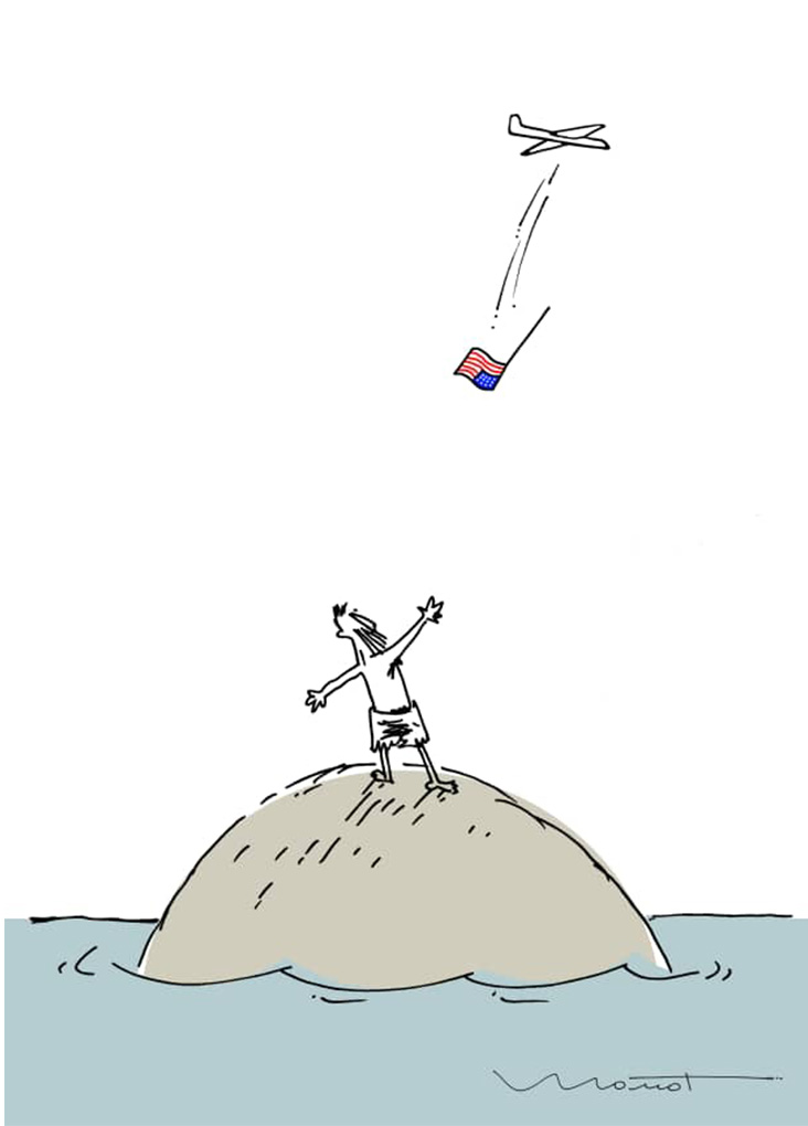 El jurado del Tomy on-line decidió premiar al ucraniano Valeri Momot. Es un dibujo sencillo pero con un mensaje claro y crudamente satírico, al estilo Tomyano, que expresa la naturaleza colonialista del imperio norteamericano y su afán de difundir el sueño americano en lugar de poner a resguardo la existencia humana.