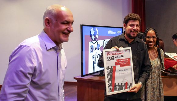 Asimismo, por decisión de la Presidencia Nacional de la Upec se otorgó excepcionalmente la Moneda conmemorativa aniversario 60 de la organización -que recibieron por estos días más de 300 profesionales del país con más de 40 años de relevante trayectoria-, a Cubadebate y su director fundador, Randy Alonso Falcón. Entregó el reconocimiento el presidente de la Upec, Ricardo Ronquillo Bello.