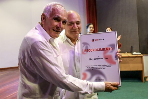 Morajes Ojeda entregó también un reconocimiento del Comité Central del Partido a Cubadebate por estos 20 años en la vanguardia de los medios públicos cubanos en la batalla contra el terrorismo mediático, por la verdad y las ideas.
