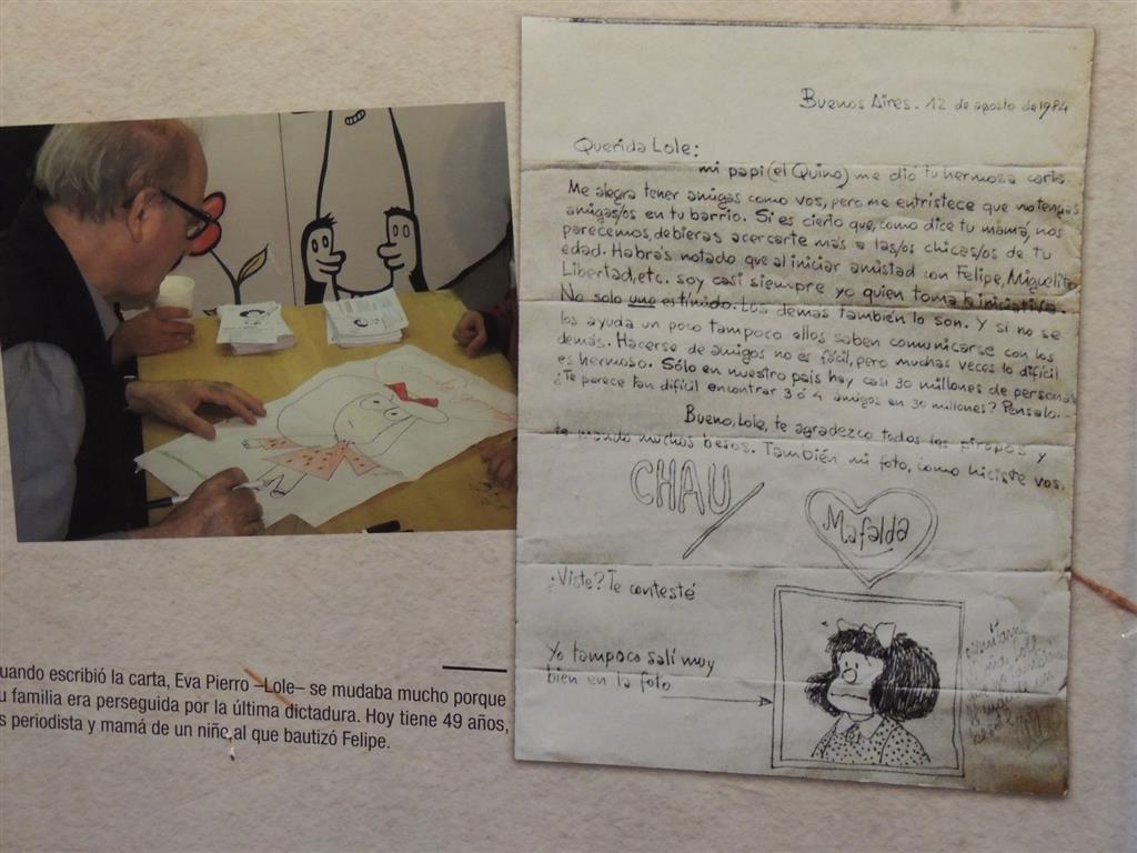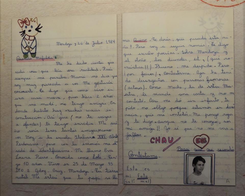 «Querida Mafalda: me di cuenta que cada cosa que leía era realidad pues siempre me pasaba. Mamá dice que soy muy parecida a ti. Me gustaría conocerte. Mi sueño sería tener tantos amigos como tú», escribió en 1984 una niña de diez años.