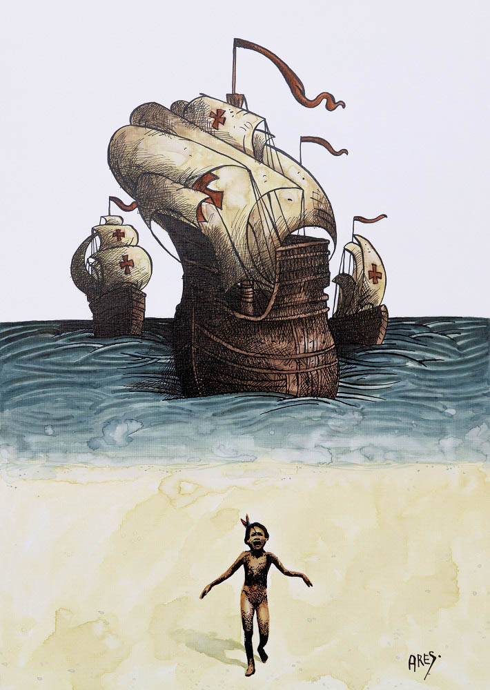 Admiran el rigor y la elegancia con que Ares aborda un proceso histórico que «chorreó sangre y lodo por todos los poros, desde los pies hasta la cabeza». Jamás hubo «encuentro de culturas» sino encontronazo de civilizaciones: en 1492, Colón descubrió América y América descubrió la Colonia. Cinco siglos después, Ares ha sabido sublimar el dolor como reflexión sonriente. Con ingenio y gracia, le ha sacado música silente a un grito ahogado por el poder y la historia oficial. Con el mismo espíritu con que Chaplin dio vida a El Gran Dictador y Benigni a La vida es bella, Ares sabe criticar con belleza. El arte es de por sí la crítica más bella. Él es el aldabonazo, y a nosotros nos toca despertarnos.