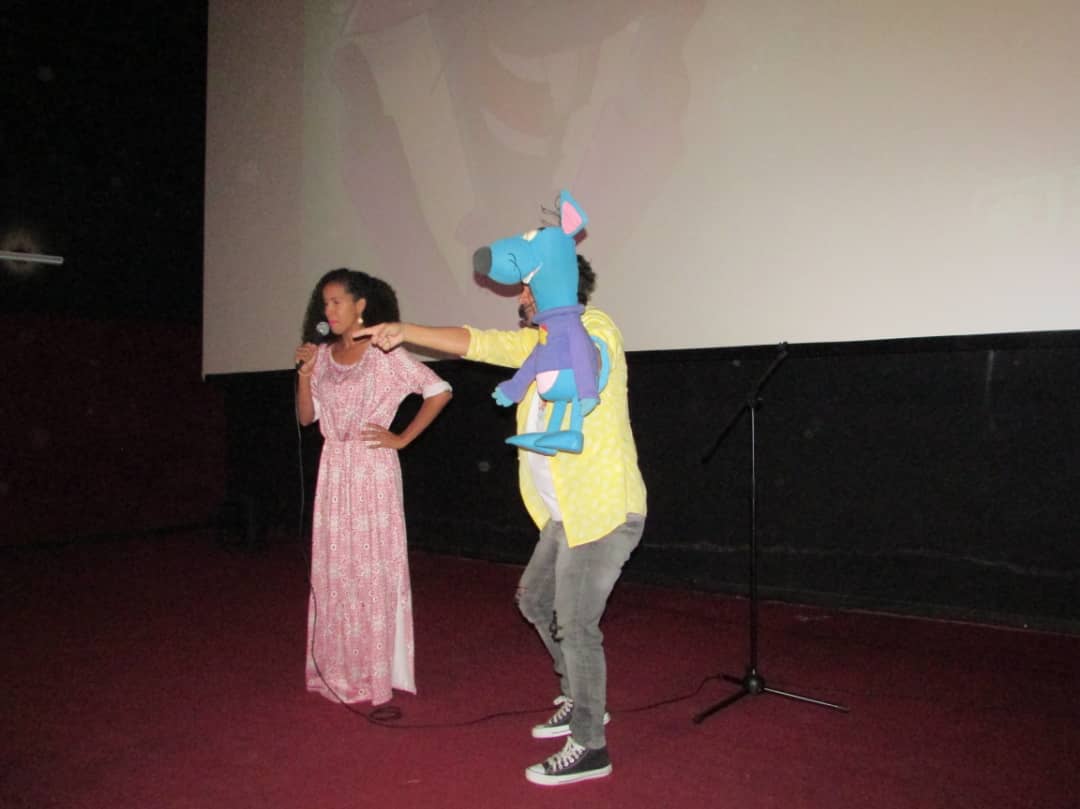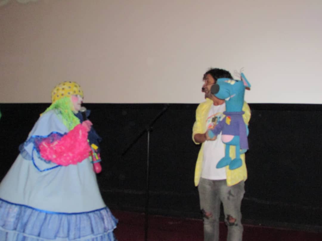 En el proscenio del cine, llano, meditabundo, encubridor, emergieron los personajes de esta tarde. Federico, animado por el actor Maikel Chávez (Pipo Pipo); Pastosa, que por momentos apunta a construir el orden, el dialogo con los lectores de la sala; un burro pintado de colores suaves y mirada cabizbaja; la gata que transmutaba como tigresa y el delirante payaso atiborrado de colores, atuendos y embrollos, un personaje hablador y risueño, extrovertido y arrojadizo.