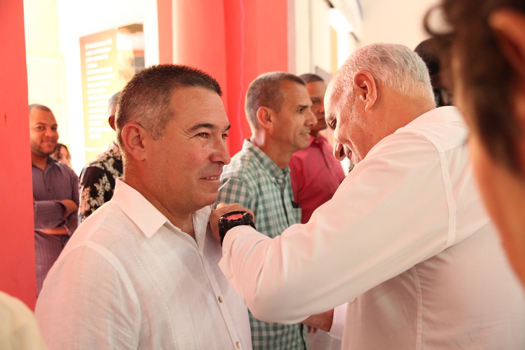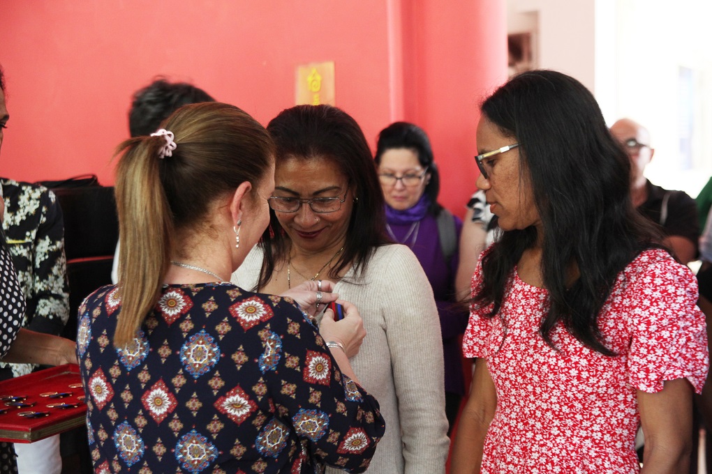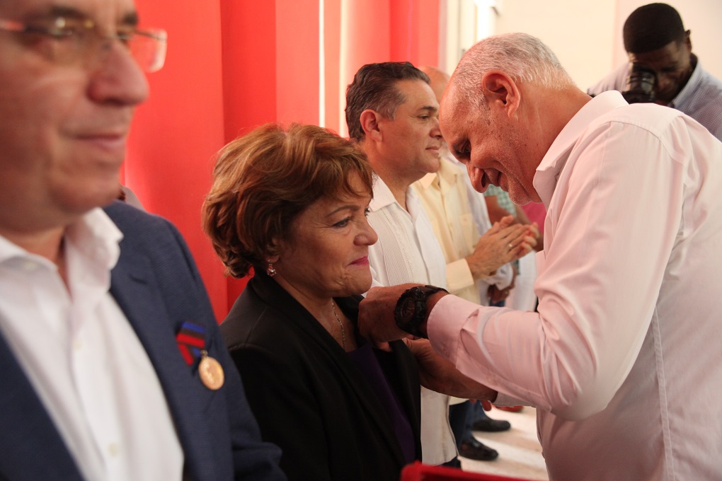Una vez que el vicepresidente de la UPEC Juan Carlos Ramírez leyó la resolución que ampara el otorgamiento de la Distinción Félix Elmusa a 11 colegas de medios nacionales y cinco de publicaciones provinciales, a 13 personalidades de diversos sectores que han respaldado ejemplarmente a la prensa y a cinco directivos y trabajadores de la organización, Maridé Fernández y Ronquillo colocaron la pieza dorada en cada pecho como antesala del cierre de crónica o perfil colectivo (d)escrito con pulso de editora por Arlín.