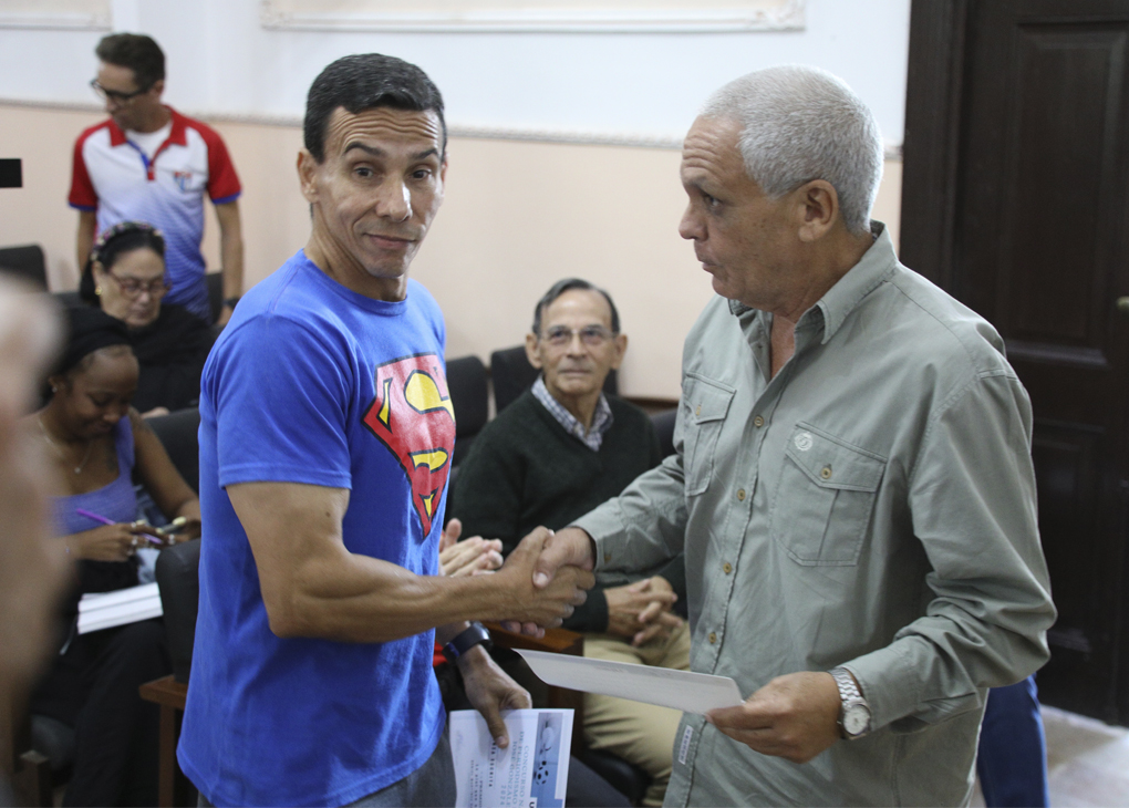 Ante Enrique Villuendas, funcionario del Comité Central del Partido; Ricardo Ronquillo, presidente nacional de la UPEC -acompañado de todo su ejecutivo profesional-, Tubal Páez, Presidente de Honor de la organización; Juana Carrasco, Premio José Martí por la Obra de la Vida; José Cedeño Tamayo, director general de Educación Física y Deporte para Todos, del Instituto Nacional de Deportes, Educación Física y Recreación (INDER) y disímiles colegas que aman a Cuba y a sus glorias, el director de la Editora Abril, Miguel Cruz, introdujo en sala abarrotada la intervención de los autores.