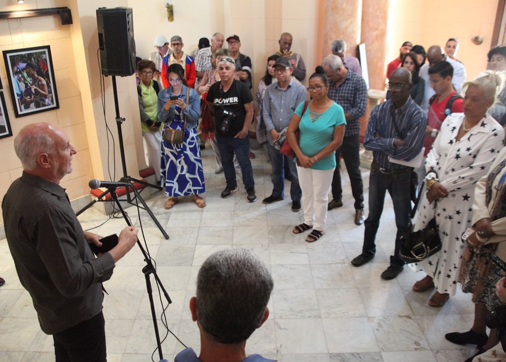 La apertura de la muestra fue iniciada con palabras del fotorreportero Juvenal Balán, Premio Nacional José Martí de Periodismo por la Obra de la Vida, quien recordó que el rol de los colegas es escuchar al pueblo, componer sus imágenes mientras tienen la cámara como parte del cuerpo. “Nuestra responsabilidad es interpretar, con las imágenes, lo que todo el mundo ve”, dijo.
