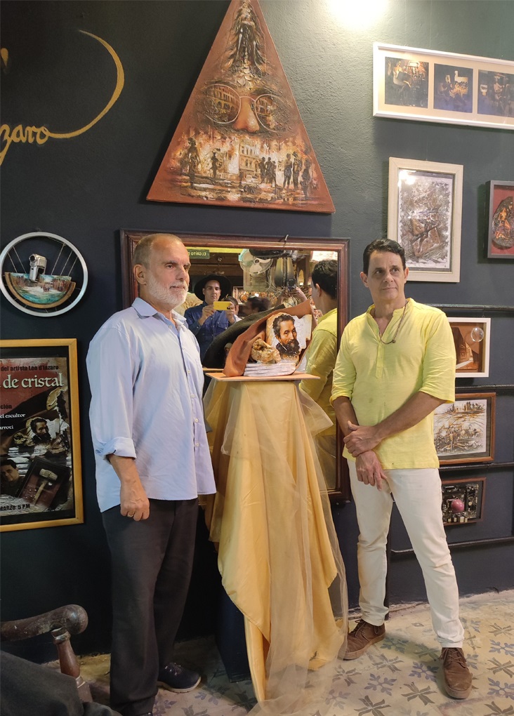 “Fue en 2005, en la sede donde radicaba Eusebio Leal; él la visitó, yo la inauguré, igual que hice hoy. Entonces, como ahora, Leo de Lázaro jugó con ese empeño de convertir objetos actuales en desecho en evidencia histórica. Según él, incorporados a la obra artística cobran cierta permanencia con el paso del tiempo. Esta es una metáfora con la que Leo ha seguido documentando la ciudad a través de su arte; su arte que tiene grandes referencias, la de su padre, la de su madre; todos en la familia son artistas. “Pero también —y, sobre todo—, porque El ojo del ciclón se ha convertido en una especie de ambiente donde pasas a otra dimensión del tiempo y el espacio. Esta pared de cristal no es más que una pared de sentimientos con la que convive el creador, los poetas, los niños que juegan aquí, quienes vienen a bailar tango.