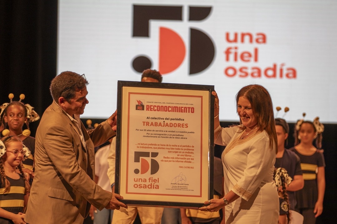 Felicito entonces a mis colegas, a los de ayer y los de hoy, a quienes tanto me han enseñado y cuidado; a nuestro colectivo completo, con ese modo tan puro de hacer y dar cariño, para junto con los trabajadores cubanos sostener—como dice el eslogan de este aniversario 55— una fiel osadía.