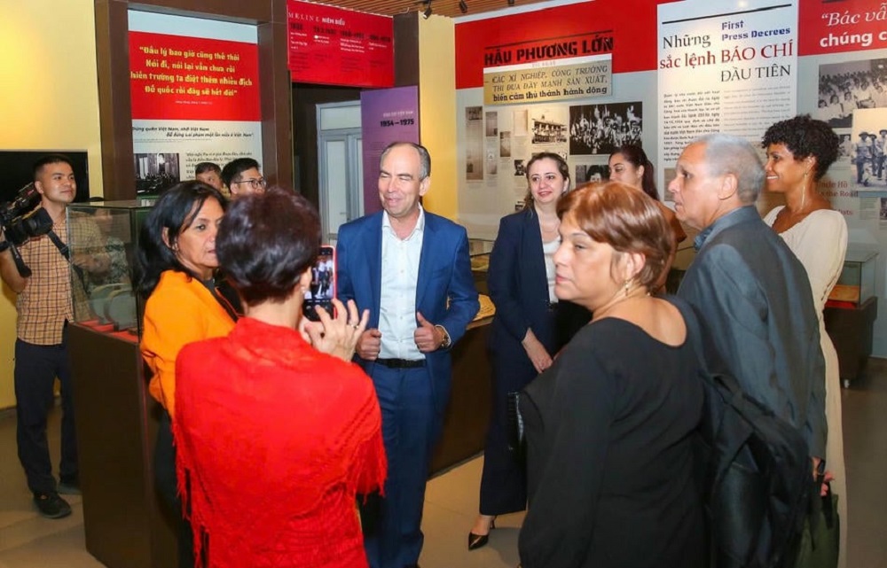 Y se detiene ante el Museo de la Prensa, un mapa detallado por la historia del periodismo vietnamita que la guía describe con orgullo y exactitud. Justo en el edificio radica la Asociación de la Prensa Vietnamita (APV), cuyo presidente Le Quoc Minh, junto a otros representantes de la organización, tiene la deferencia de recibir a la delegación cubana, encabezada por Juan Carlos Ramírez Heras, vicepresidente de la Unión de Periodistas de Cuba e integrada por Taimí Fernández Pérez y Odalis Acosta Góngora, representantes del gremio en las provincias de Guantánamo y Artemisa, respectivamente, la Doctora en Ciencias de la Comunicación Ana Teresa Badía y Yoleisy Pérez Molinet, o sea, la guajira deslumbrada a quien Escambray concedió el gran privilegio de representarla.