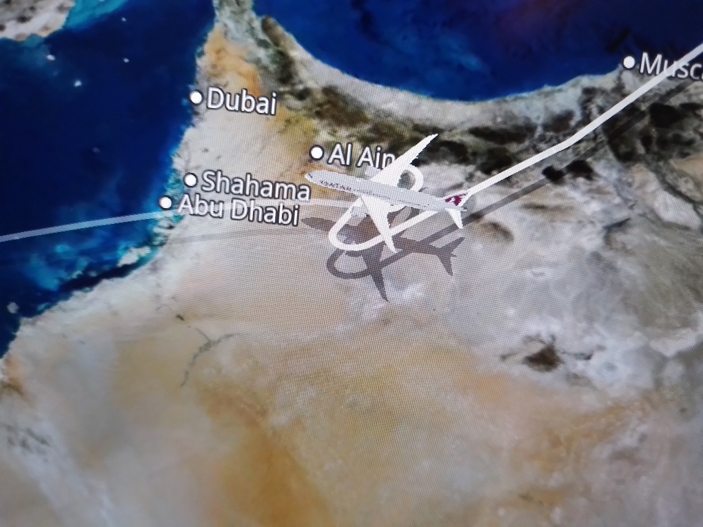 Transcurrieron dos horas, tal vez más. Por el audio, de nuevo, aquella voz familiar: se reanudaría el vuelo y en menos de una hora habría otro aterrizaje —¿feliz?— en Doha para luego continuar viaje.