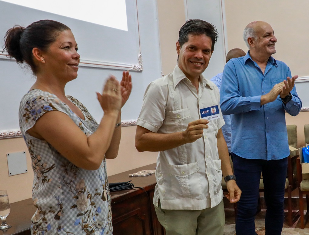 En una ceremonia de buenos discursos, Yuniel Labacena, integrante no profesional de la Presidencia Nacional de la UPEC, recordó en el suyo los diez años transcurridos desde que entrara a la organización, pero refirió que sus vínculos comenzaron mucho antes, al inicio de la carrera de periodismo.