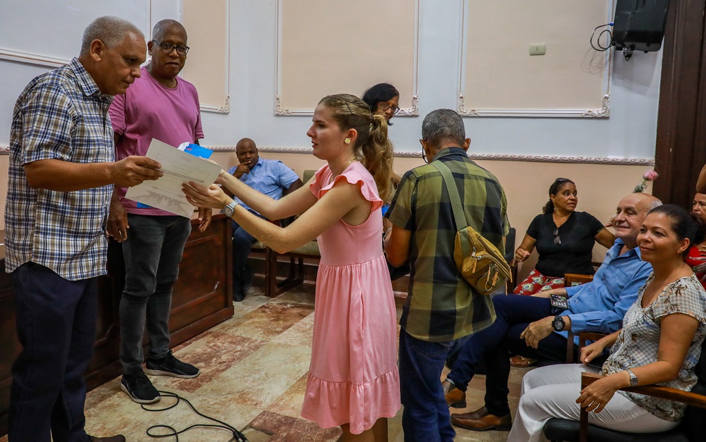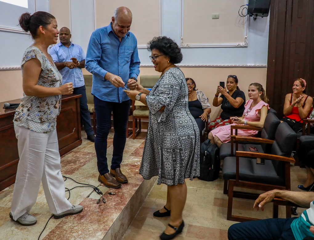La colega refirió el dilema de asumir la profesión y buscar a la vez sostén económico y destacó la importancia de encarar tal reto con firmeza y creatividad. Al cierre de su agradecimiento, confesó preguntarse —de cara al pensamiento martiano sobre la carrera— qué significa realmente ser vigía, qué significan el desinterés y la vocación del servicio público.