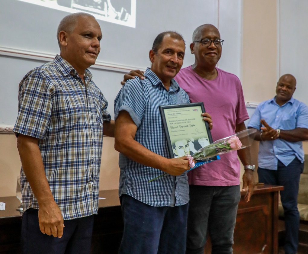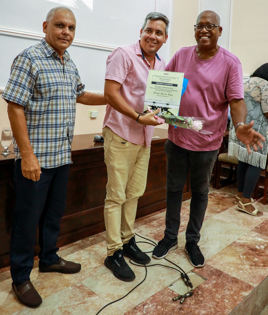 La velada sirvió además para hacer efectivos —de manos del vicepresidente Juan Carlos Ramírez y del presidente del jurado, Pelayo Terry— los reconocimientos previamente anunciados a los ganadores del Concurso Ramal de la Prensa Escrita Ricardo Sáenz, marcado este año por la primera entrega del Premio de Edición por la Obra de la Vida, dictamen que finalmente enriquece el ya valioso currículo de Oscar Sánchez Serra, de Granma.