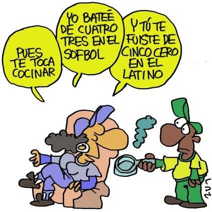 LAZ: Tengo otra: Una vez estábamos Ares (multipremiado gráfico cubano), Raval (caricaturista personal cubano), dos o tres más y yo haciendo caricaturas en el zoológico. Como en ese momento no había nadie para dibujarse nos pusimos a conversar y hablábamos de mujeres. Raval, casi gritando, y Ares le dice: “Coño, Raval, habla bajo, asere (amigo, compadre), mira como hay gente pasando y niños y todo”. A lo que Raval muy apenado le dice: “Verdad compadre, discúlpame”. Y hablando muy bajito, continuó con el tema, pero con unos movimientos tan evidentes y exagerados, que Ares le tuvo que decir: “mira, Raval, asere, mejor grítalo porque ahora, hasta quienes están por allá por el estanque de los cocodrilos, saben de qué tú estás hablando”.