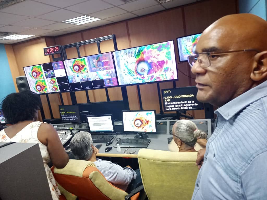La tarde de este martes 28 de octubre una parte de la presidencia de la Unión de Periodistas de Cuba compartió con equipos de la radio y televisión nacionales (Canal Caribe, Reloj y Radio Rebelde) mientras ofrecían una cobertura a la fase preparatoria y de enfrentamiento del país al peligroso huracán Melissa. Los medios y sus profesionales, como parte del sistema de Defensa Civil nacional, cumplían con su responsabilidad de informar, alertar, acompañar la enorme movilización de las instituciones y toda la sociedad para preservar las vidas y los recursos.