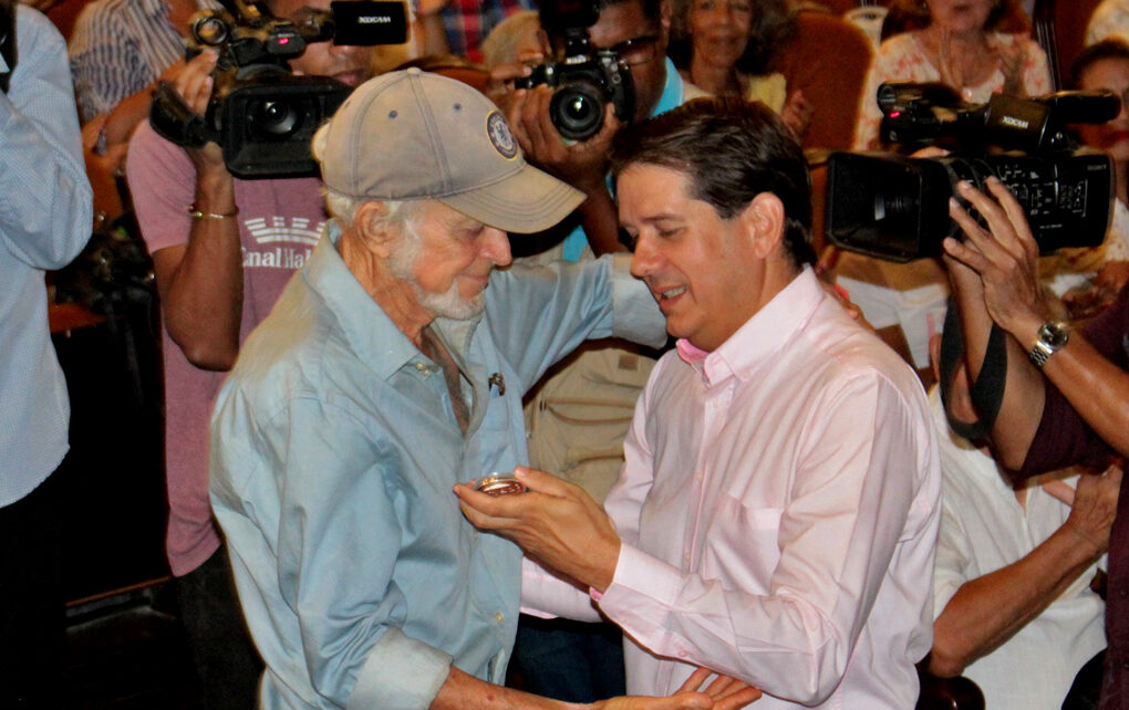 Imagen de portada: Pedro Rodríguez García (Peroga), recibió la Moneda Aniversario 60 de la Upec de manos de Jorge Legañoa, ex vicepresidente de la institución. Foto: Heriberto González.