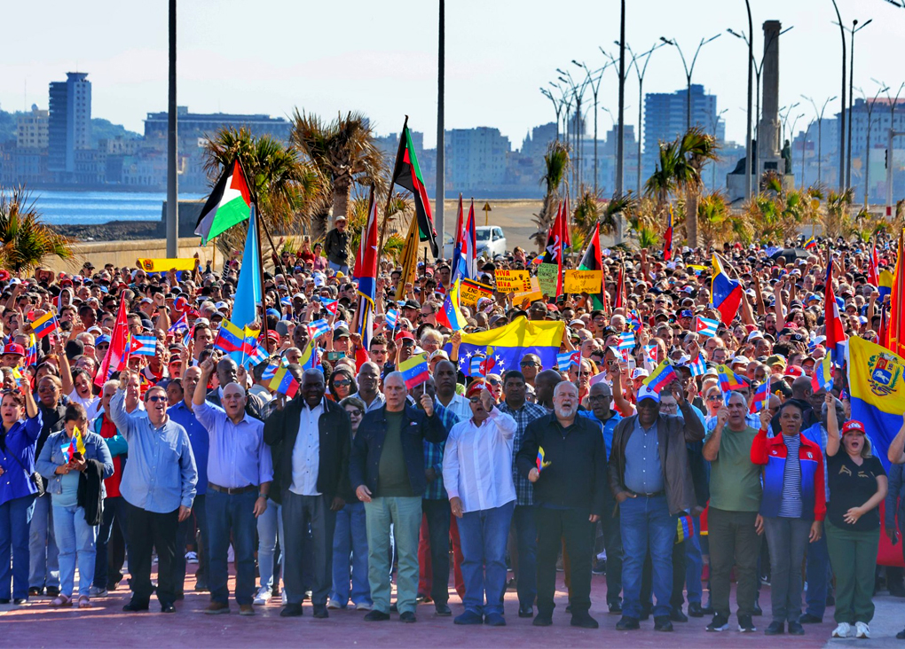 Con la presencia del primer secretario del Comité Central del Partido Comunista de Cuba (PCC) y presidente de la República, Miguel Díaz-Canel Bermúdez, tuvo lugar en la Tribuna Antimperialista de La Habana, un acto de denuncia a los ataques estadounidenses contra Venezuela, perpetrados en la madrugada de este sábado.