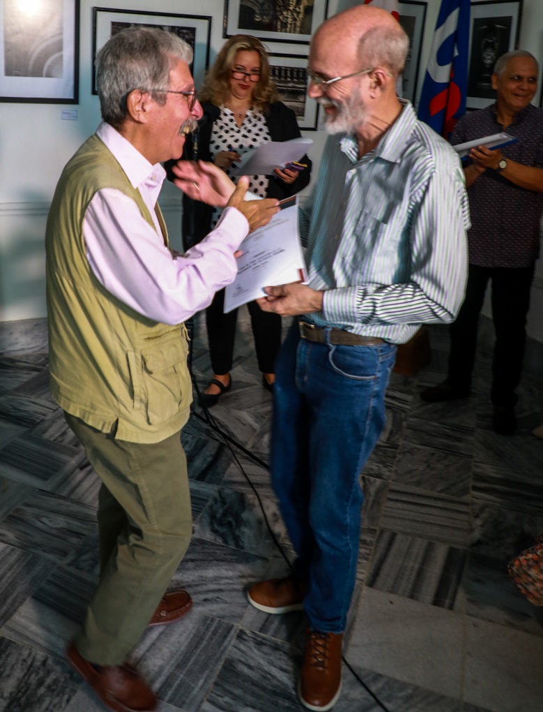 Le escucharon colegas de medios nacionales, condecorados o no, y dirigentes de diverso perfil: Luis Morlote, vicejefe del Departamento Ideológico del Comité Central del Partido; Ricardo Ronquillo, líder de la UPEC; Katia Rodríguez, secretaria del Sindicato Nacional de Trabajadores de la Cultura, y Jorge Luis Aneiros, presidente de la Unión de Historiadores de Cuba. Juvenal Balán, Premio Nacional José Martí por la obra periodística de la vida, también estuvo, en familia, en la ceremonia.