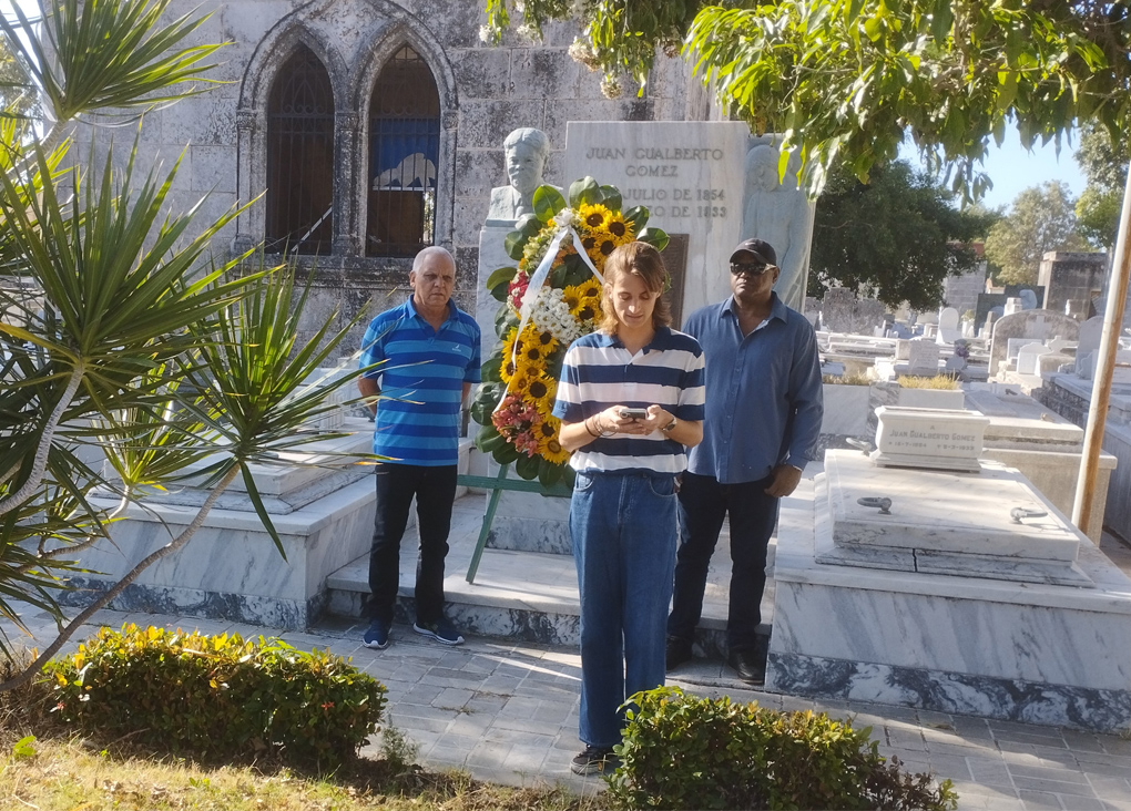 Los periodistas de medios nacionales y provinciales hicieron la marcha habitual desde el área central del cementerio hasta la tumba de Juan Gualberto Gómez, cantaron el Himno Nacional y colocaron -esta vez lo hicieron Juan Carlos Ramírez, vicepresidente nacional, y Onoides Díaz, líder en La Habana- la ofrenda calzada por las palabras del estudiante.