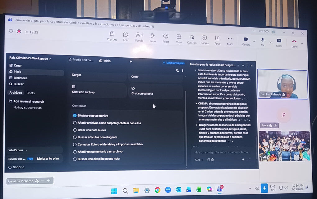 Organizado por el Instituto de Información y Comunicación Social y la Oficina Regional de la Unesco en Cuba, el taller Herramientas de IA para la cobertura de noticias sobre el clima y los desastres en las redacciones fue un espacio de descubrimiento de nuevas formas de hacer periodismo en dichas circunstancias, cuando lo que se busca es información minuto a minuto, pero sin olvidar la veracidad que caracteriza al periodismo cubano.