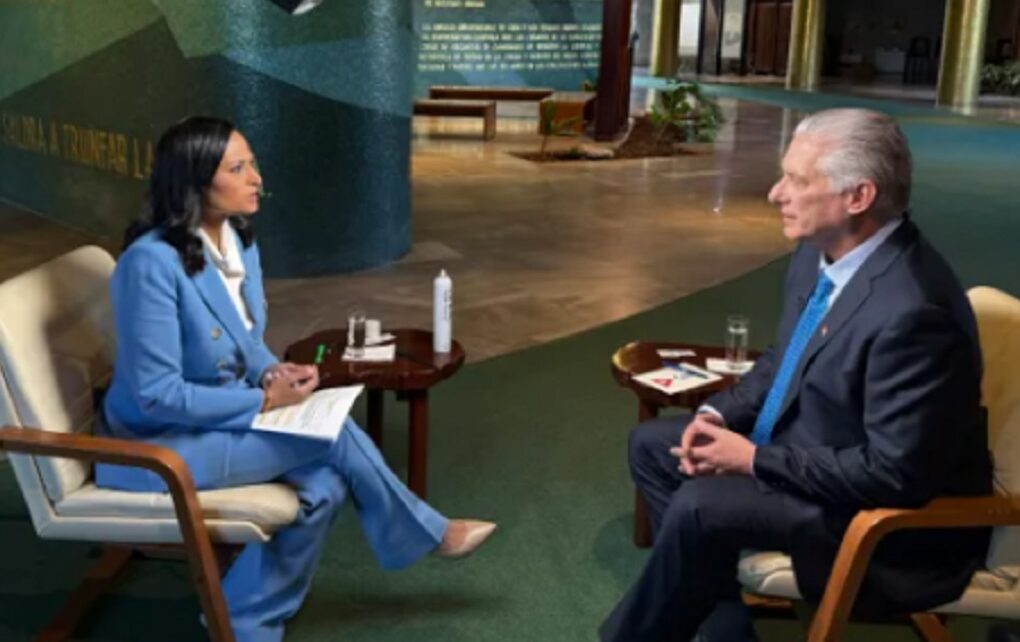 Imagen de portada: El presidente cubano Miguel Díaz-Canel Bermúdez y la periodista Kristen Welker de NBC. Foto: NBC News.