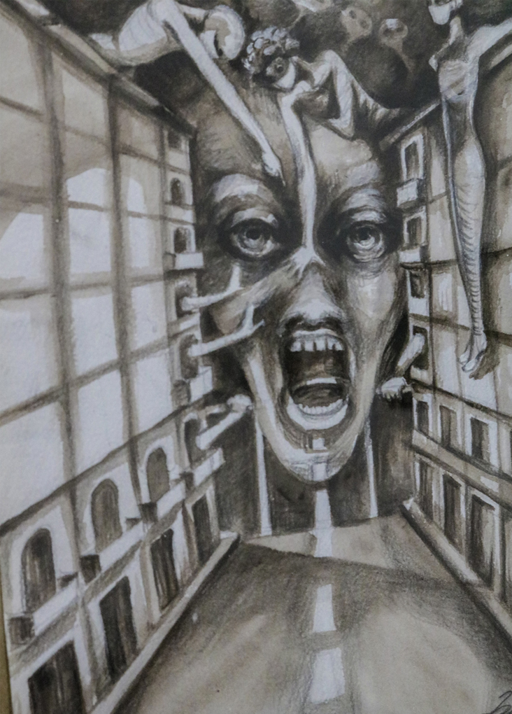 Cada cuadro nos asoma a universos oníricos, fantásticos y tenebrosos, como si fueran derivados de alucinaciones, en los que las figuras femeninas son el eje principal de la línea de pensamiento. Entre estos sobresalen las “tarántulas coronadas” unos 40 dibujos realizados por la artista en tiempos del distanciamiento social decretado ante la presencia de la pandemia en La Habana, entre los que sobresale uno relacionado con las experiencias de la enfermera Yaquelín Collado, quien permaneció durante varias semanas en cuidados intensivos debido a este flagelo.
