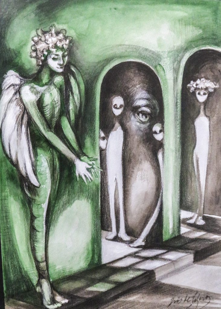 En ese ambiente, totalmente intimista, la artista conforma sus narraciones las cuales extiende en figuraciones expresionistas que instan a la meditación sobre los peligros de la existencia humana. Fantasmagóricos personajes que la asechan y nos asechan en el devenir contemporáneo y que se dispersan en sus cuadros y pequeñas esculturas al punto de convencernos de que, ante cualquier adversa circunstancia existencial, nuestro mundo exterior e interior puede tornarse de color gris.