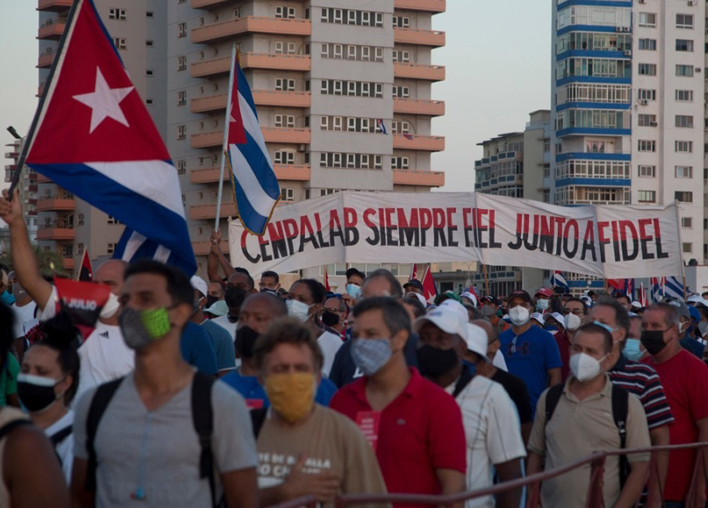 En La Habana, esta mañana, más de 100 mil personas se manifestaron en apoyo a la Revolución cubana. pic.twitter.com/2Tzpycb92c